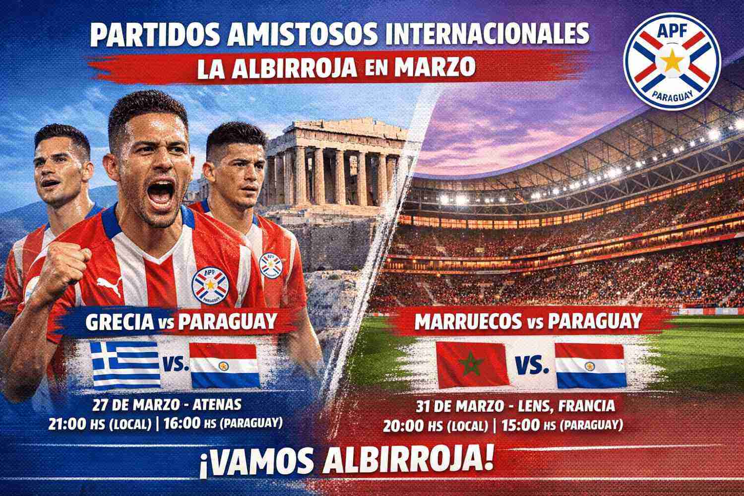 La Selección Nacional disputará dos amistosos internacionales ante la Selección de Grecia, el 27 de marzo en Atenas, y a la Selección de Marruecos, el 31 de marzo en Lens, Francia.